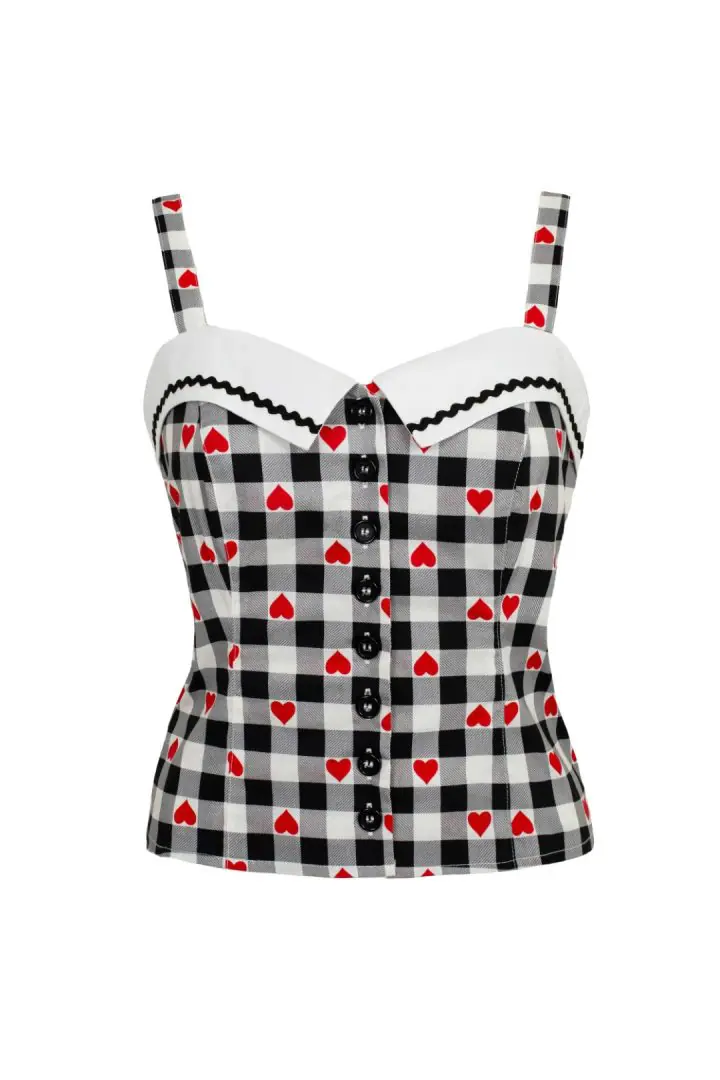 Søt retro-topp med gingham-hjertetrykk fra Hell Bunny