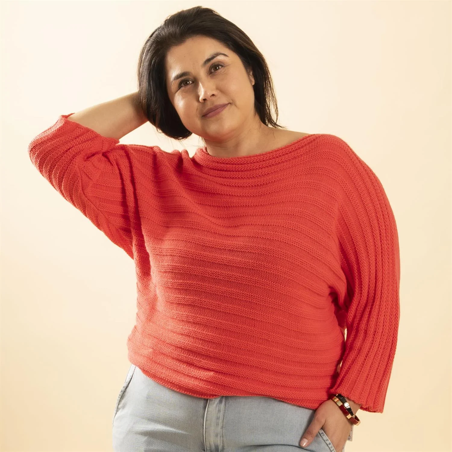 Genser med båthals og 3/4 korte ermer. Genseren har en avslappet passform og en heldekkede tekstur. Det perfekte hverdags plagget til din garderobe.