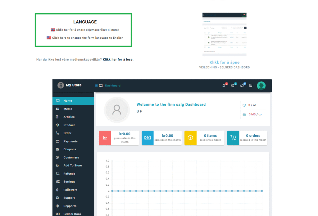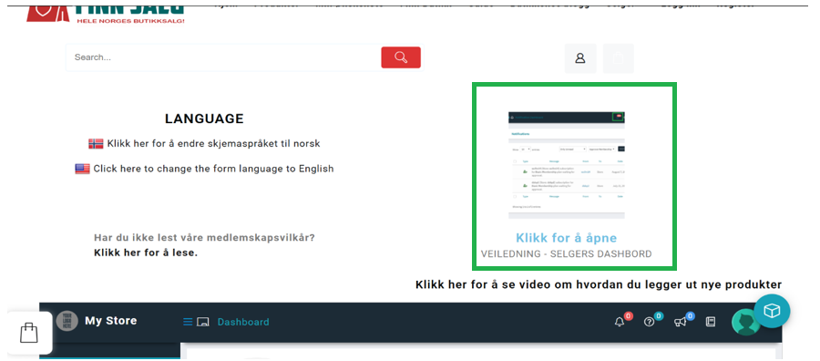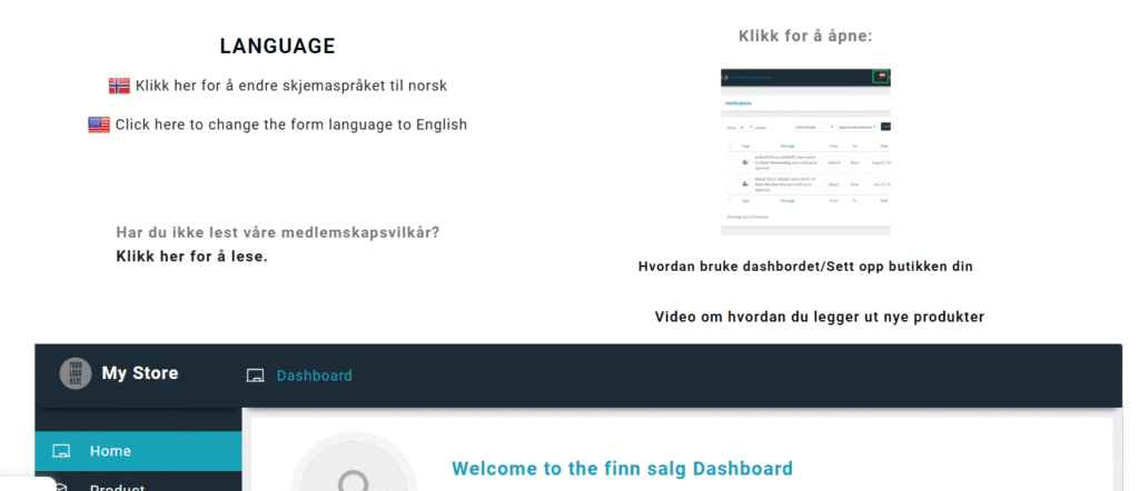 Du vil bli sendt til dashbordet for butikken din. Her kan du velge norsk språk.